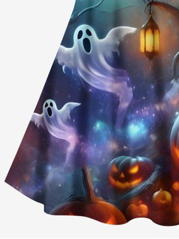 Plus Size Pumpkin Lantern Ghost Bat Tree Print Halloween Ombre Crisscross A Line Cami Dress - Multi-a - M