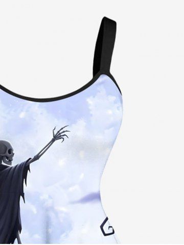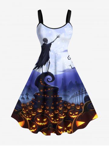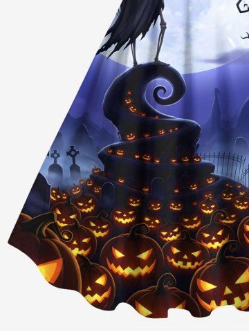 Halloween Dresses > Plus Size Pumpkin Lantern Skeleton Wizard Tree Moon Print Halloween A Line Dress