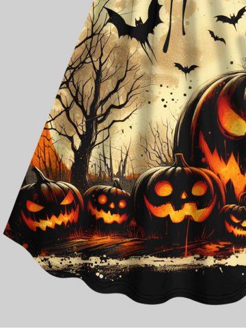Halloween Dresses > Plus Size Pumpkin Lantern Tree Bat Moon Striped Print Halloween Costume Cinched A Line Dress