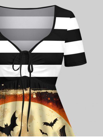Plus Size Pumpkin Lantern Tree Bat Moon Striped Print Halloween Costume Cinched A Line Dress - Multi-a - 1x