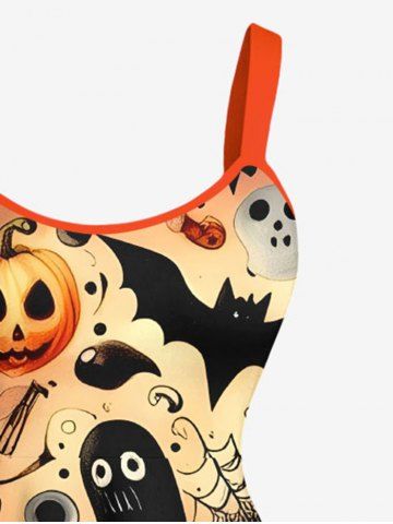 Plus Size Pumpkin Skull Ghost Wizard Spider Web Bat Print Halloween A Line Tank Dress - Orange - Xs