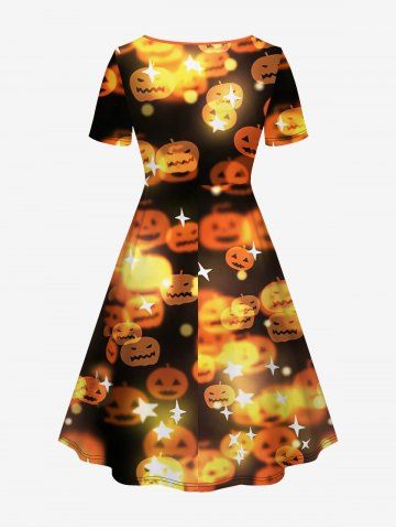 j*****34Halloween Pumpkin Face Print A Line DressColor: BLACK Size: 4X | US 26-28Bought this dress for my daughter's Holloween party. it fit her perfectly.nVery nice light weight material stiching excellent. She was a happy Lady.