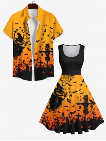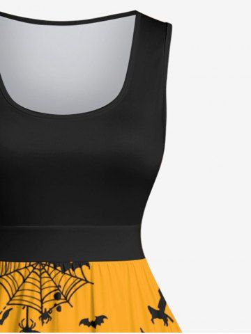 Halloween Dresses > Plus Size Pumpkin Wizard Cross Bat Spider Web Print Halloween Costume Vintage Swing A Line Dress