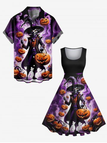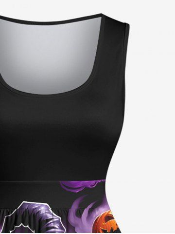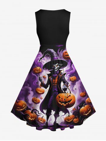 Plus Size Pumpkin Wizard Ombre Smoke Print Halloween 1950s Vintage Swing A Line Dress - Black - 6x