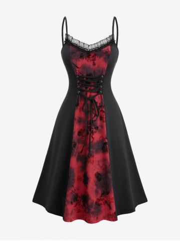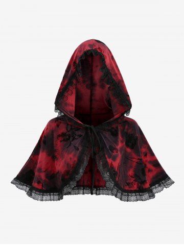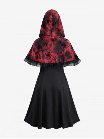 m*****y5Halloween Costume Plus Size Rose Flower Flocking Tie Dye Print Lace Up Lace-trim Cami Dress and Hooded Cape SetColor: BLACK Size: 5X | US 30-32bonne qualité...la grandeur est parfaite...je porte du XL mais dans votre boutique c'est du 1x et ça fait parfaitement...le suivi pour les commandes est excellent