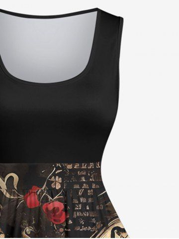 Plus Size Rose Flower Heart Letters Print Halloween Costume Vintage Swing A Line Dress - Black - 2x