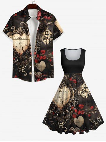 Plus Size Rose Flower Heart Letters Print Halloween Costume Vintage Swing A Line Dress - Black - 4x