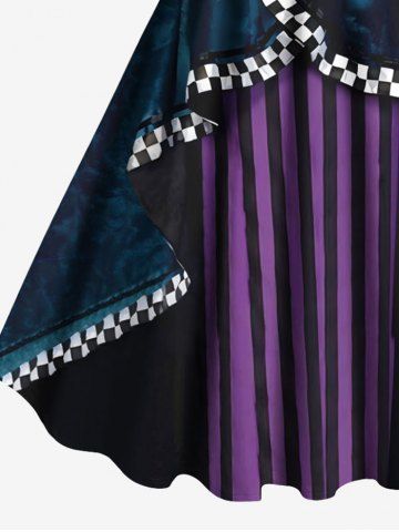Halloween Dresses > Plus Size Ruffles Suit Pattern Plaid Print Halloween A Line Tank Dress