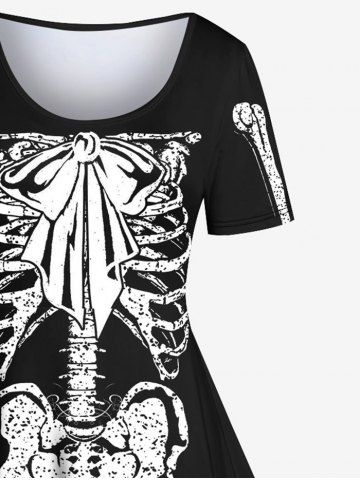 Plus Size Skeleton Bowknot Print Vintage A Line Dress - Black - 5x