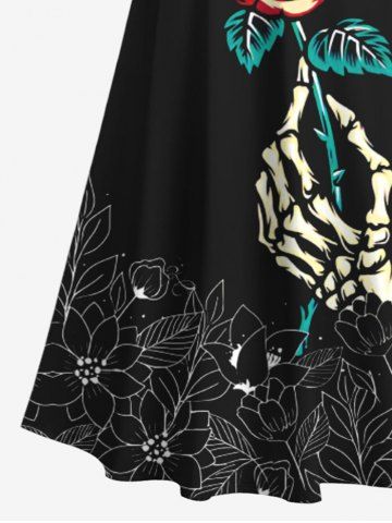 Halloween Dresses > Plus Size Skeleton Hand Rose Flower Leaf Print Halloween Costume Crisscross A Line Maxi Dress