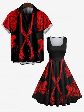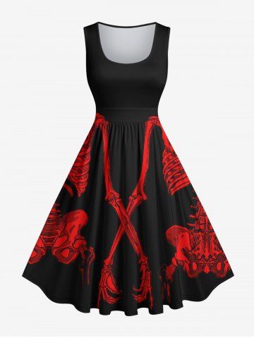 Halloween Dresses > Plus Size Skeleton Print Halloween Costume Vintage Swing A Line Dress