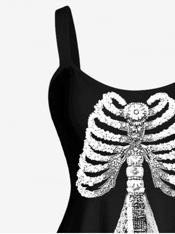 Plus Size Skeleton Print Halloween Sleeveless Dress - Black - S