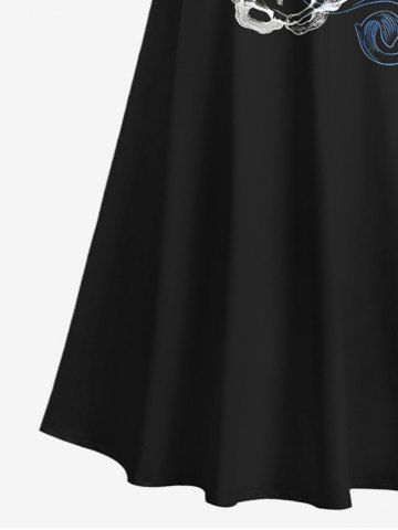 Plus Size Skeleton Rose Flower Leaf Butterfly Print Halloween Costume Crisscross A Line Maxi Dress - Black - 2x