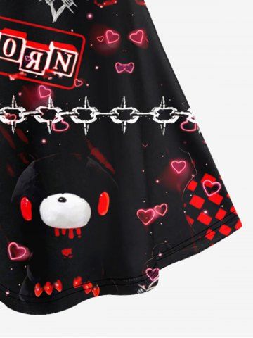 Halloween Plus Size Skull Cross Plaid Heart Bear Warning Print Crisscross Cami Dress - Red - M