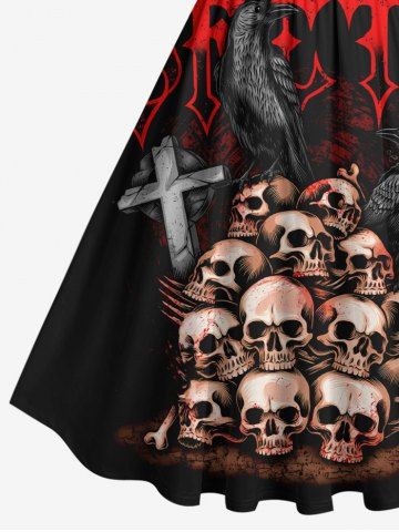 Halloween Dresses > Plus Size Skull Crow Cross Letters Print Halloween 1950s Vintage Swing A Line Dress