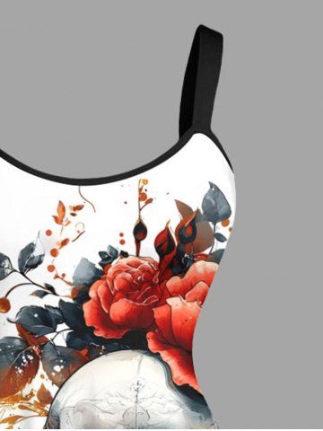 Halloween Dresses > Plus Size Skull Flower Leaf Print Halloween Costume A Line Tank Dress