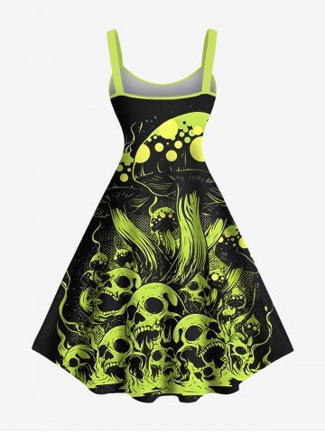Plus Size Skull Mushroom Fire Flame Print Halloween A Line Tank Dress - Black - S