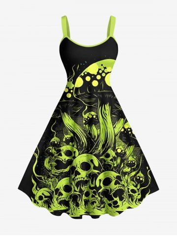 Plus Size Skull Mushroom Fire Flame Print Halloween A Line Tank Dress - Black - 6x