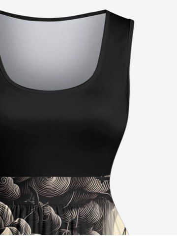 Plus Size Skull Pirate Sea Waves Ship Print 1950s Vintage Dress - Black - 2x