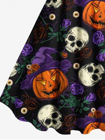 Plus Size Skull Pumpkin Flower Leaf Branch Print Halloween A Line Tank Dress - Black - M