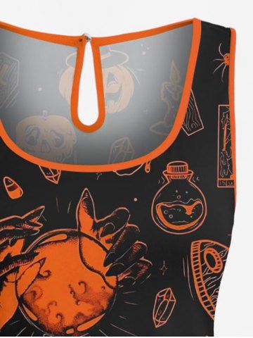 Halloween Dresses > Plus Size Skull Pumpkin Tombstone Print Halloween Drawstring Pocket Romper
