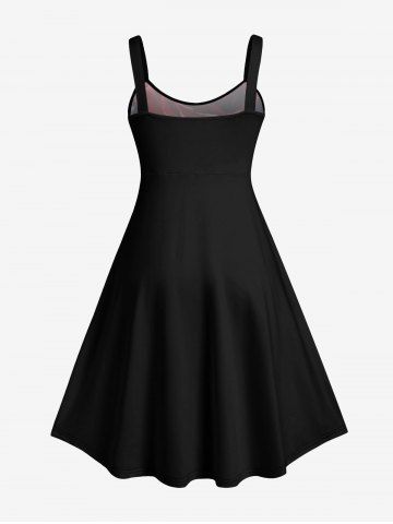Plus Size Skull Rose Flower Ink Painting Print Halloween Costume A Line Tank Dress - Black - 6x