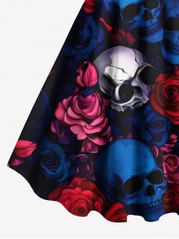 Halloween Dresses > Plus Size Skull Rose Flower Print Halloween A Line Tank Dress
