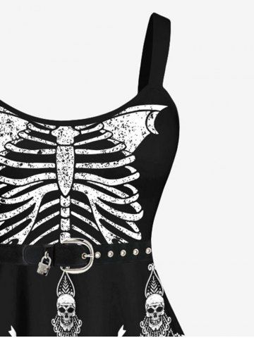 Plus Size Skull Skeleton Flower Print Tank Dress - Black - Xs