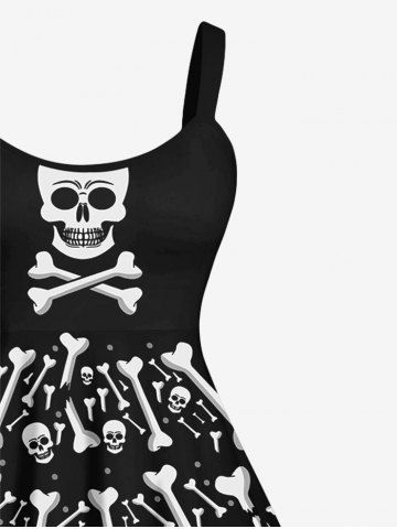 Plus Size Skulls Bone Print Halloween Tank Dress - Black - Xs