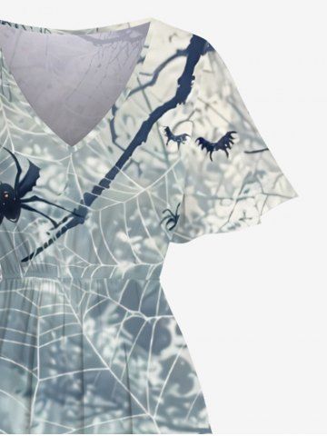 Plus Size Spider Web Maple Leaf Ombre Forest Print Halloween Costume Split Pocket A Line Midi Dress - Multi-a - M