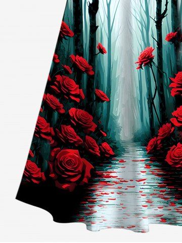 Halloween Dresses > Plus Size Tree Forest Rose Flower Road Print Halloween Costume Ombre Crisscross A Line Maxi Dress