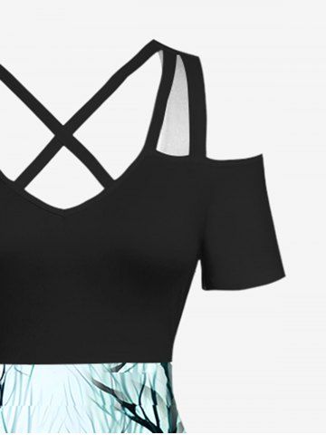 Plus Size Tree Forest Rose Flower Road Print Halloween Costume Ombre Crisscross A Line Maxi Dress - Multi-a - 6x