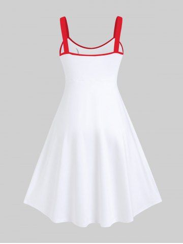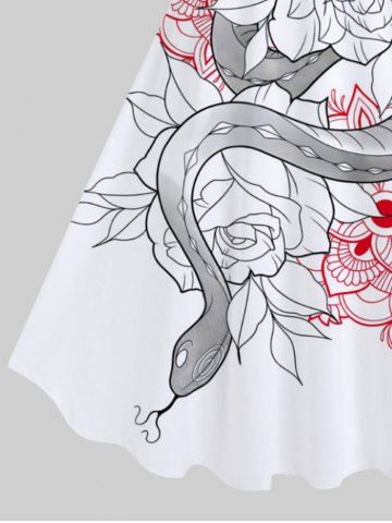 Plus Size Vintage Floral Line Snake Print Halloween Costume A Line Tank Dress - White - Xs