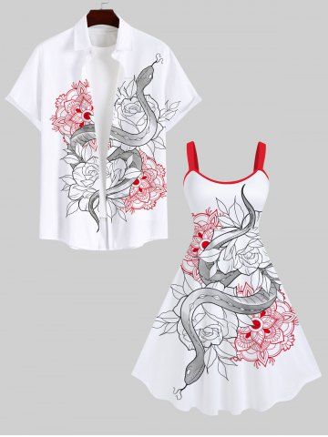 Plus Size Vintage Floral Line Snake Print Halloween Costume A Line Tank Dress - White - M
