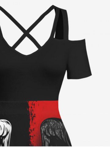 Plus Size Wings Ink Painting Colorblock Print Halloween Costume Crisscross A Line Maxi Dress - Multi-a - S