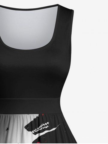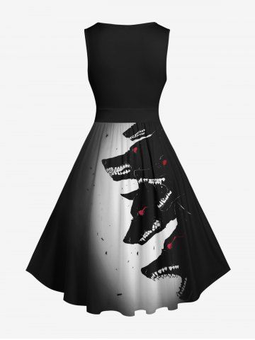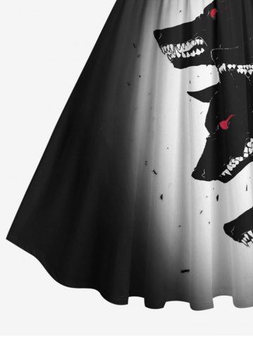 Plus Size Wolf Print Halloween Costume Ombre Vintage Swing A Line Dress - Black - Xs