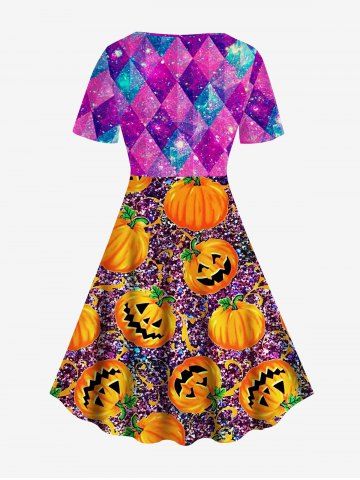 Pumpkin Print Halloween Fit and Flare Dress - Multi - 2x | Us 18-20