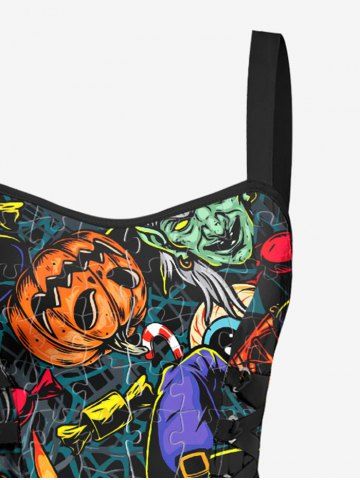 Pumpkin Wizard Eye Print Halloween Lace Up A Line Tank Dress - Black - L