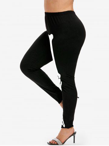 Halloween Costume High Waist Skeleton Print Skinny Leggings - Black - 4x | Us 26-28