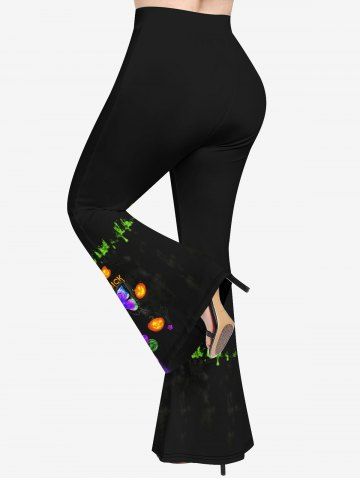 Plus Size 3D Butterfly Candy Pumpkin Colorblock Print Halloween Flare Pants - Black - 5x