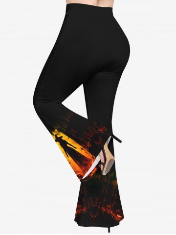 Plus Size Bat Castle Wizard Cross Pumpkin Print Halloween Flare Pants - Black - S