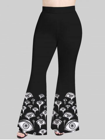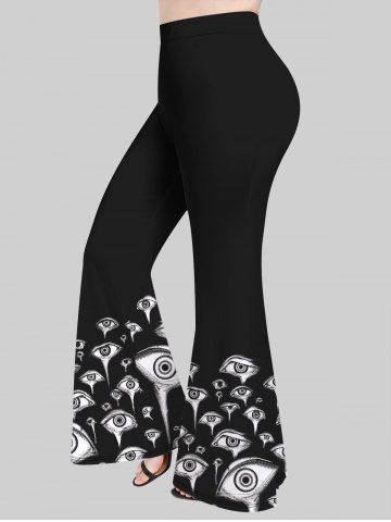 Plus Size Eye Tears Print Flare Pants - Black - 5x