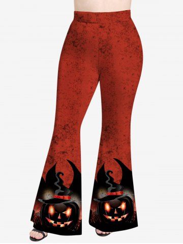 Plus Size Halloween Costume Hat Pumpkin Latern Tomb Eyes Print Flare Pants - Red - 3x