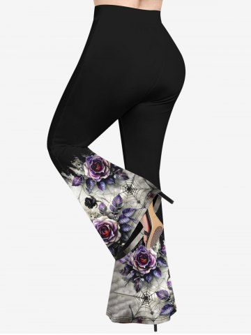 Halloween Leggings & Pants > Plus Size Halloween Costume Rose Flower Leaf Spider Web Print Flare Pants