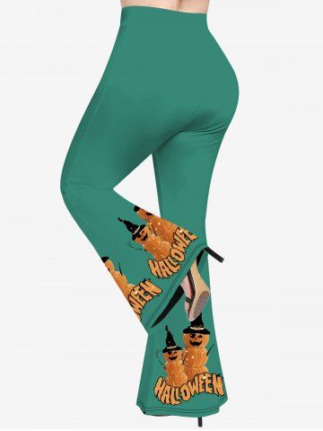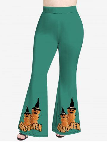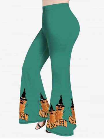 Plus Size Halloween Hat Pumpkin Print Flare Pants - Green - 5x