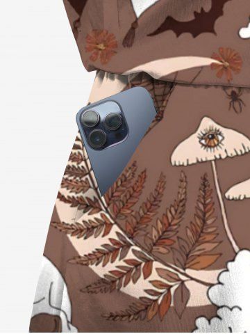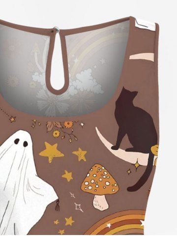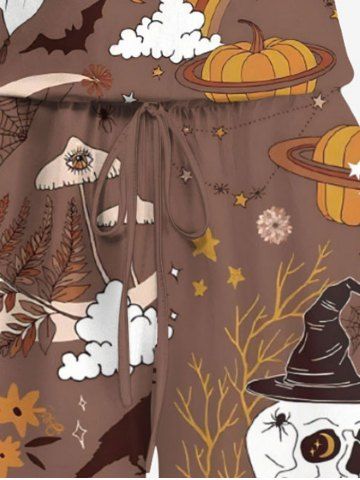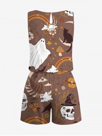 Plus Size Halloween Pumpkin Ghost Skull Flowers Mushroom Print Cinched Romper - Light Brown - Xxs