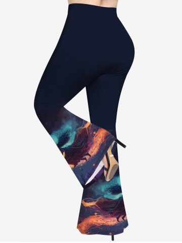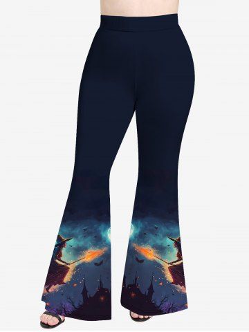 Halloween Leggings & Pants > Halloween Plus Size Moon Tree Glitter Hat Girl Print Flare Pants