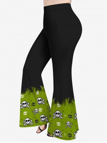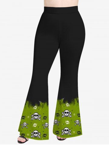 Halloween Plus Size Skull Colorblock Print Flare Pants - Black - L