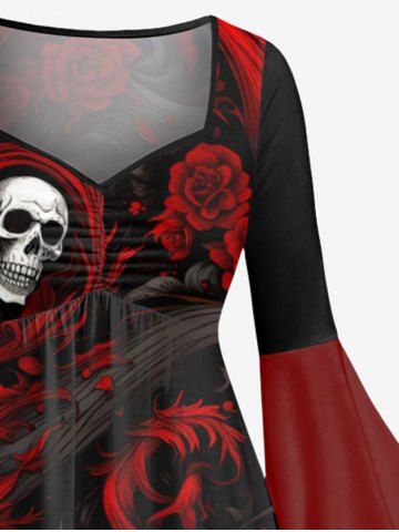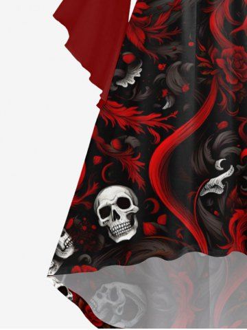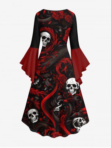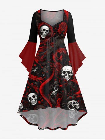 R*****r5Plus Size Halloween Costume Skulls Rose Flower Print Ruched Flare Sleeve High Low DressColor: BLACK Size: 3XThis outfit was adorable & a big hit at our Halloween party! I found the perfect accessories to go with it & it is true to size & very soft & comfortable!