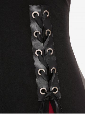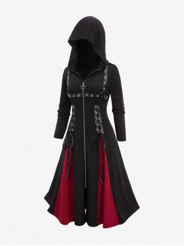 D*****e5Plus Size Zipper Lace Up Grommets PU Leather Stripe Hooded Coat and Gothic Lace Up Contrast Godet Hem Flare Pants OutfitColor: BLACKLOVE this outfit received sooo many compliments about it, only wish it was a little shorter in the legs, but other then that its beyond perfect. As i am only 5^2 I wish there was more varity for us short girls..lol
